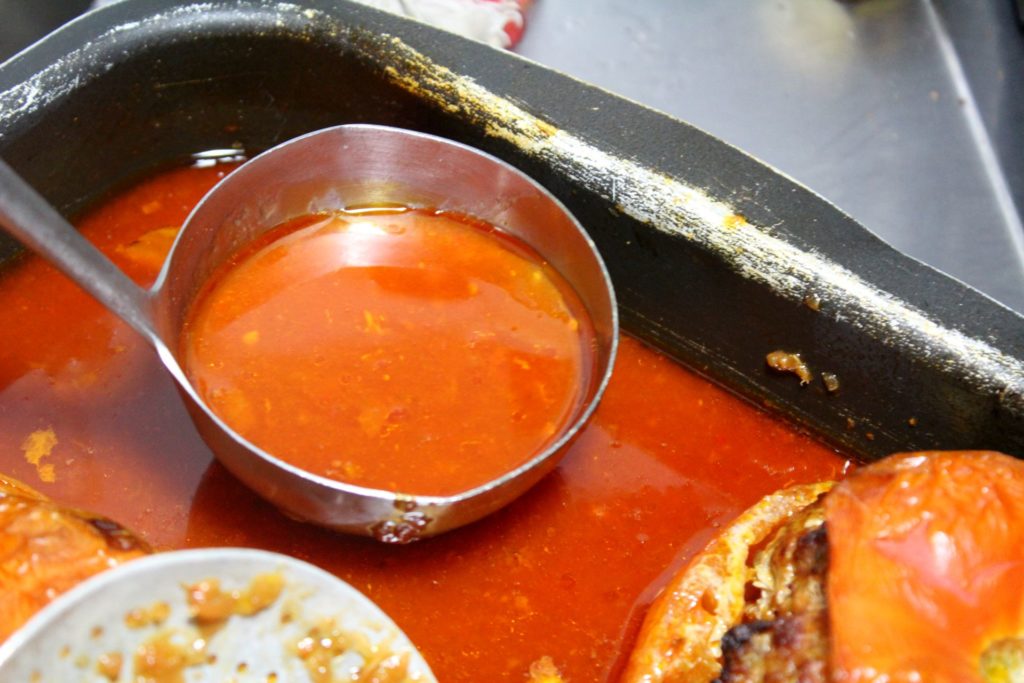 Natürlich noch mehr von der Soße geben. Die schmeckt so gut, dass man darin baden möchte. Das fette Schweinehack hat ordentlich Fett darin abgegeben. Das ist richtig derbe und schmutzig. Geschmacklich würde ich das zwischen Balkan und Mittelmeer verorten.