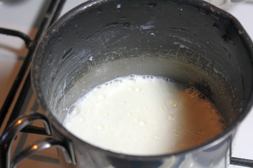 Die Milch ist noch der Rest vom Milchschaum für die Latte Macchiato.