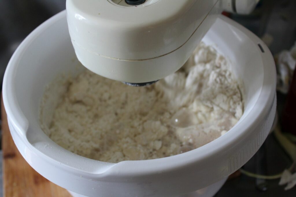 Den Teig den ich sonst auf zwei Fladenbrote verteile, habe ich auf vier Brote aufgeteilt. Der Hintergedanke war die Mädchen die unter Vegetarismus leiden, mit Brot für die vegetarischen Dipps zu versorgen.