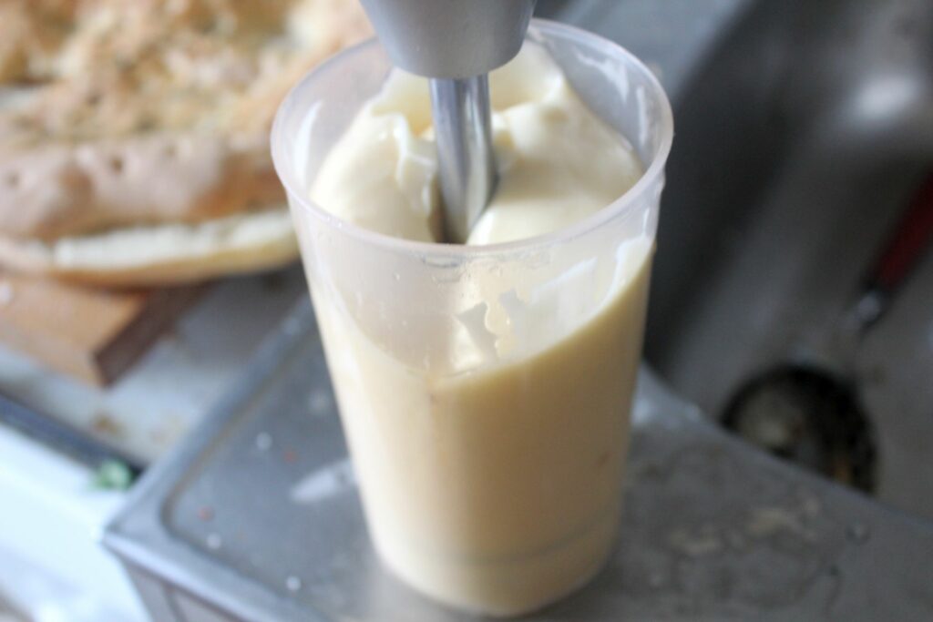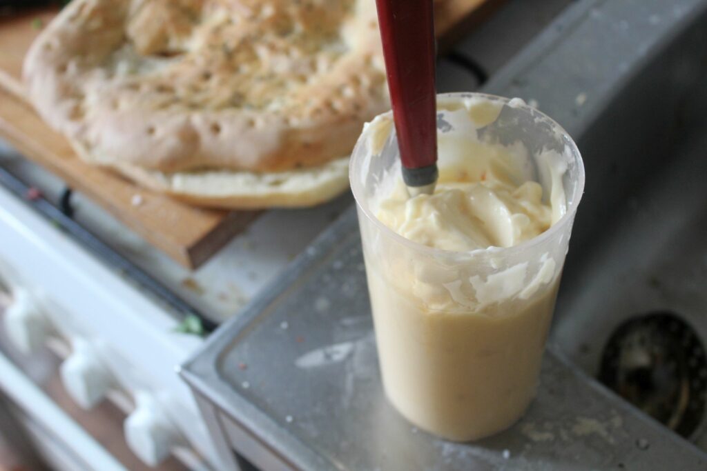 Unterseite mit Knoblauchmayonnaise bestrichen