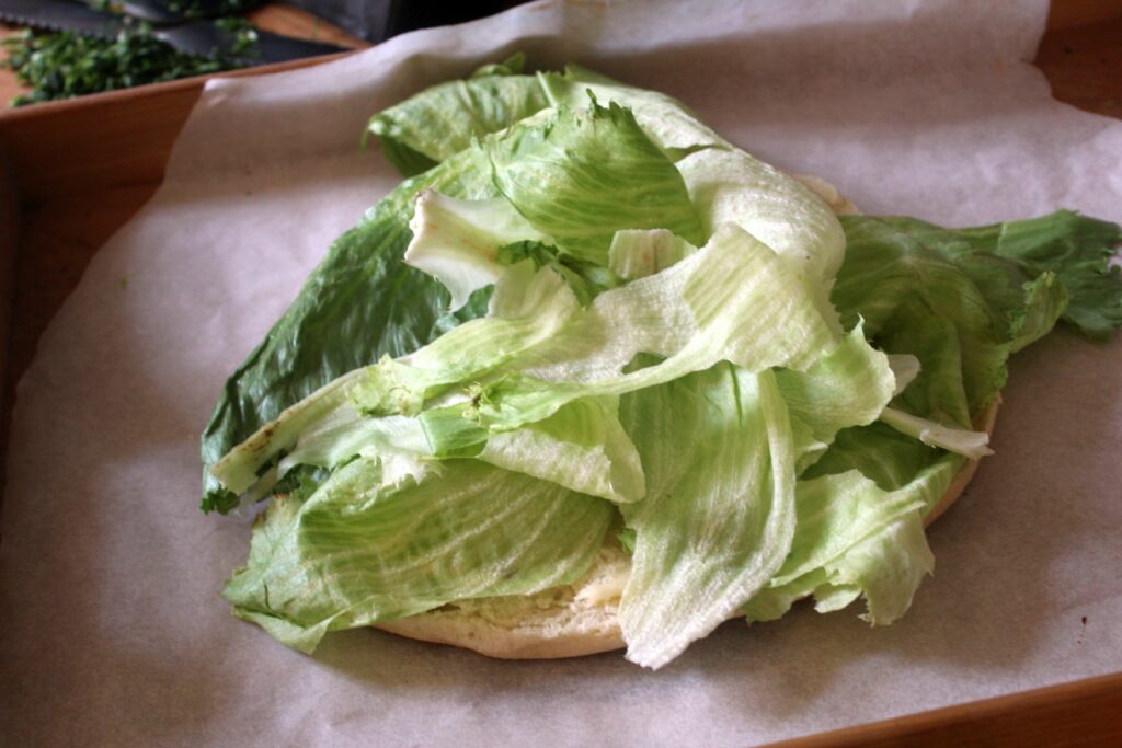 Mit der Knoblauchmayonnaise bestreiche ich Unterseite