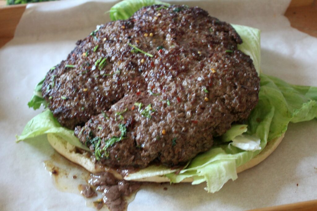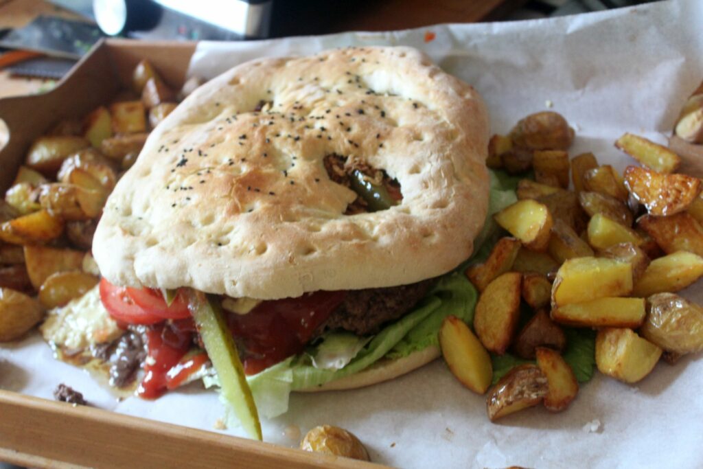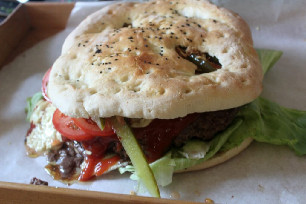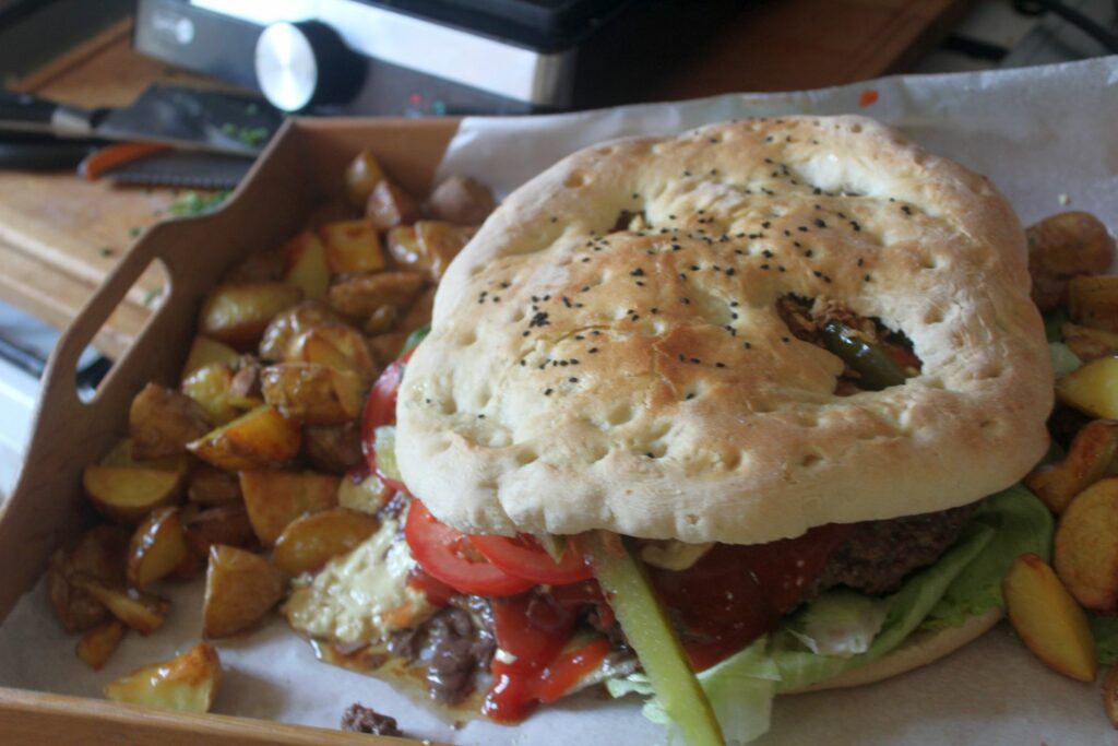 Burger mit 1200 Gramm Pattie und selbst gebackenem Fladenbrotbun