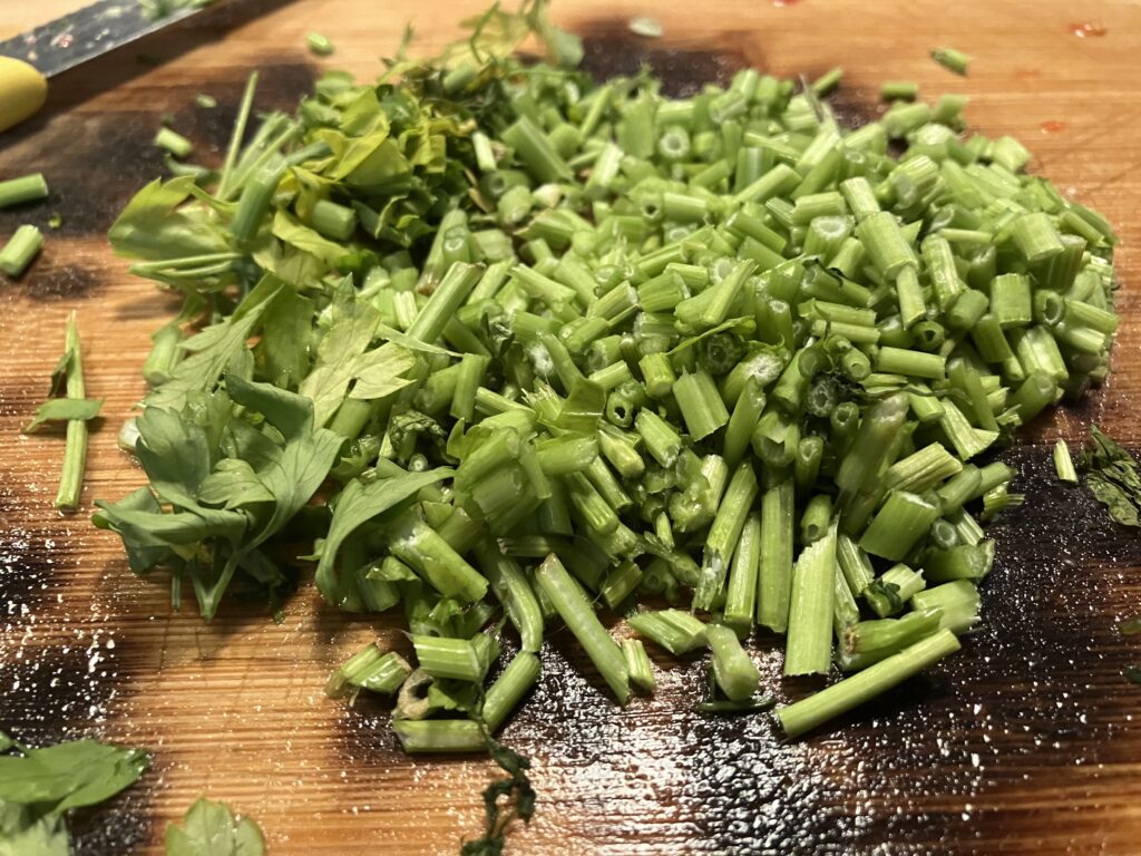 Petersilie hacken, beide Seiten sind o.k, ich werfe nichts weg