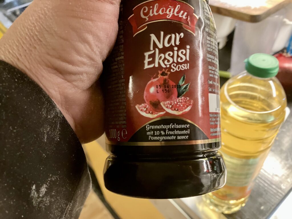 Alles vermischen und dann gleich servieren. Das ist so ein knackiger, lecker gewürzter Salat, der einem sofort den Geist anknipst. Genau so frisch soll ein Salat sein. Die Mischung aus Granatapfelsirup, Zitronensaft und Olivenöl, haut voll hin.
