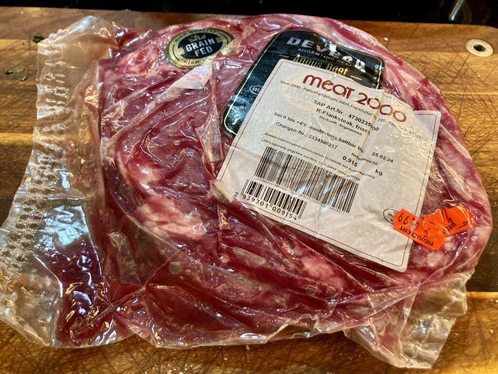 Das ist mein Flanksteak. Sehr geil freilaufend und mit Getreide gefüttert.