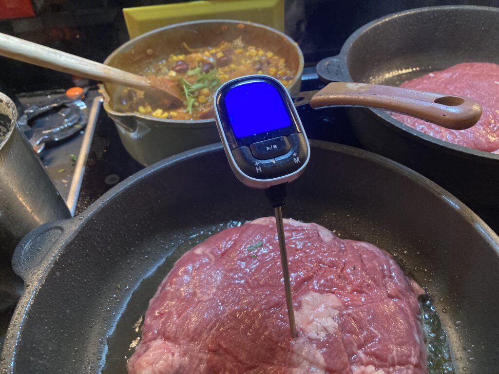Ich nehme mein Kernthermometer und arbeite mich langsam an die 58 Grad ran.