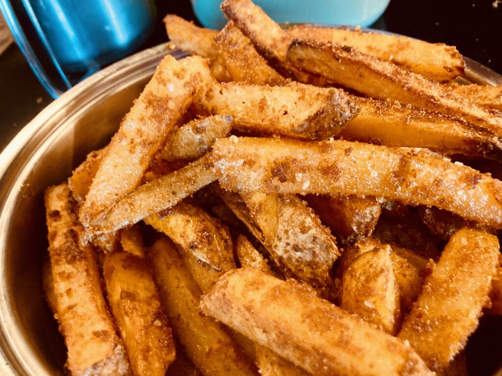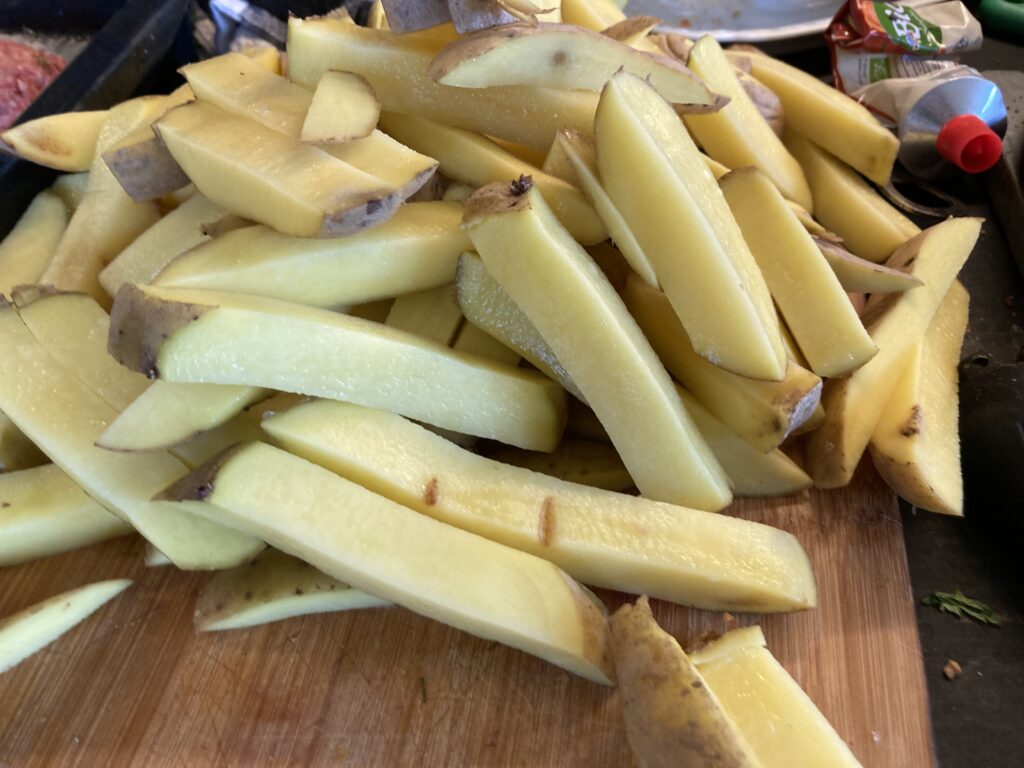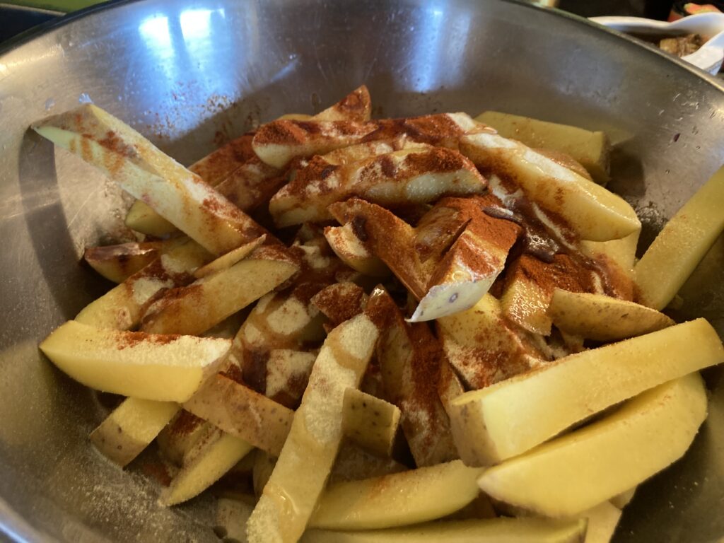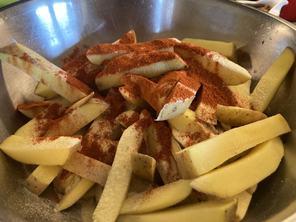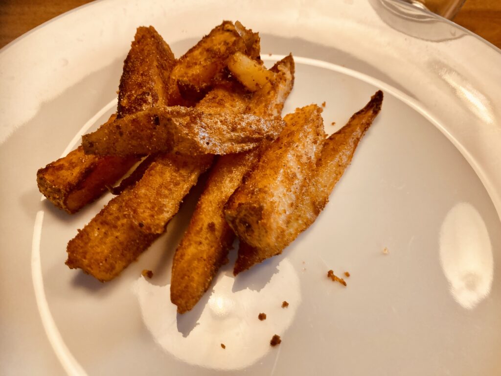 Herzlich Willkommen bei meiner täglichen Suche nach attraktiven Beilagen, die weder viel Geld kosten, noch aus vielen Konservierungsstoffen und Geschmacksverstärkern bestehen. Da versteht man dann wieder schnell, warum Getreideprodukte und Kartoffeln zu den Grundnahrungsmitteln gehören. Daraus kann man immer etwas zaubern. Die Country fries sind eine dankbare Aufgabe, weil man da nicht viel falsch machen kann und im Gegenzug sind sie leichter kross zu bekommen, als normale Pommes frites aus dem Ofen, gehen schneller und da sitzt deutlich mehr Geschmack drin.