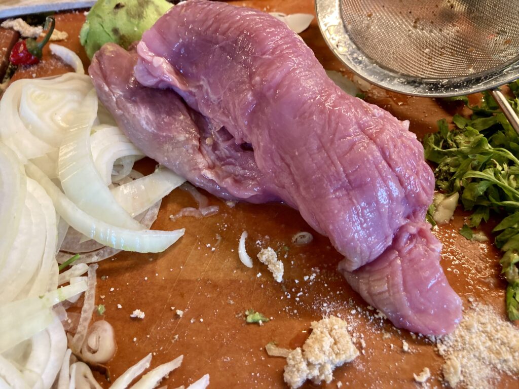 In Jamaica, in der Dom Rep, Kuba und der erweiterten Karibik sind die ziemlich schmerzlos und werfen auch ein Filet in heißes Öl. Ich habe das vor Jahren schon einmal mit Rindfleisch gemacht und es hat mir sehr gut gefallen. Jetzt ergab es sich gerade passend, weil ich schon andere Komponenten des Abendessens frittiert hatte, dass ich das Fleisch ebenfalls ins Ölbad geschickt habe. Ich mag das Garen in Öl sehr, weil es gleichmäßig gart, das Innere saftig hält und weil es generell einfach ist, aber seht selbst.
