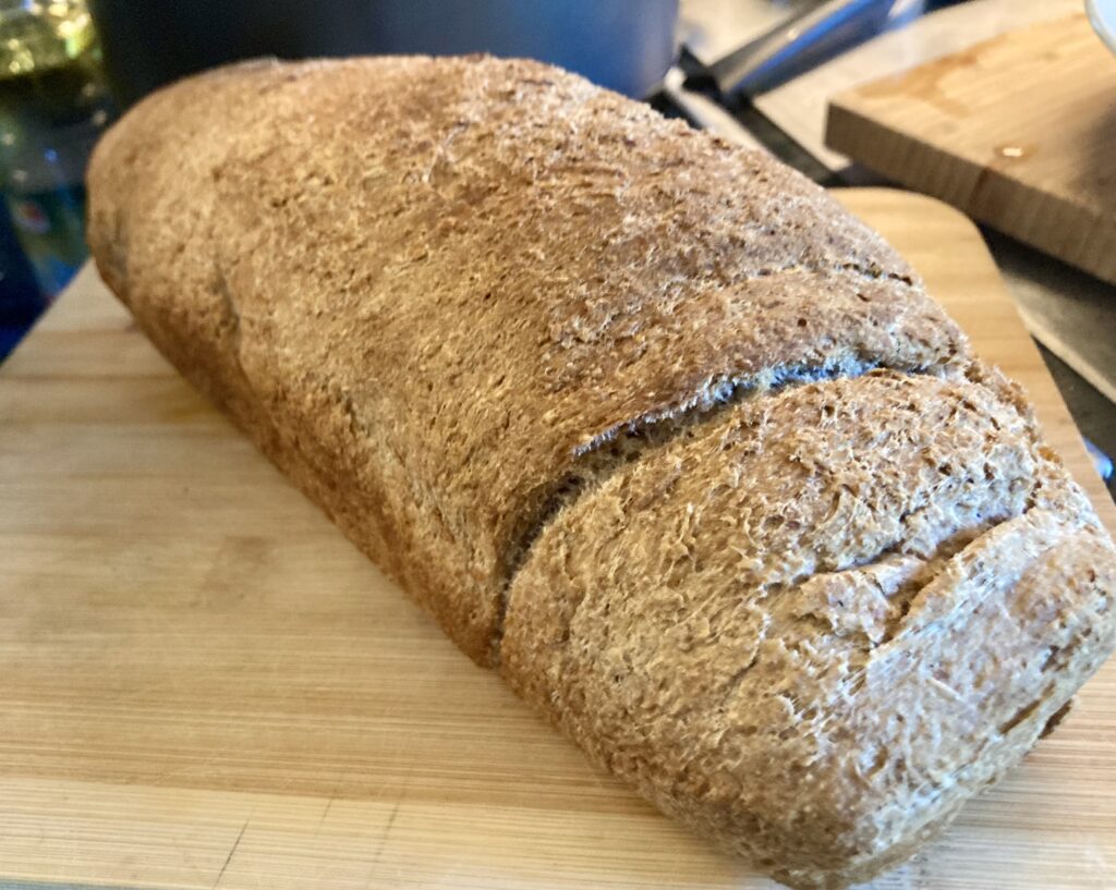 Hier gibt es ein ganz einfaches Brot, das den Blutzucker nicht so explodieren lässt, weil es aus Vollkorn ist. Es schmeckt angenehm rustikal mit leicht wahrnehmer Salznote und einer schönen Kruste. Das schmeckt auf keinen Fall nach Verzicht, sondern nach bewusster Ernährung. Man kann es gut vorbereiten und einfach backen, ein paar Tage haltbar ist es auch.