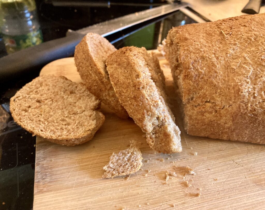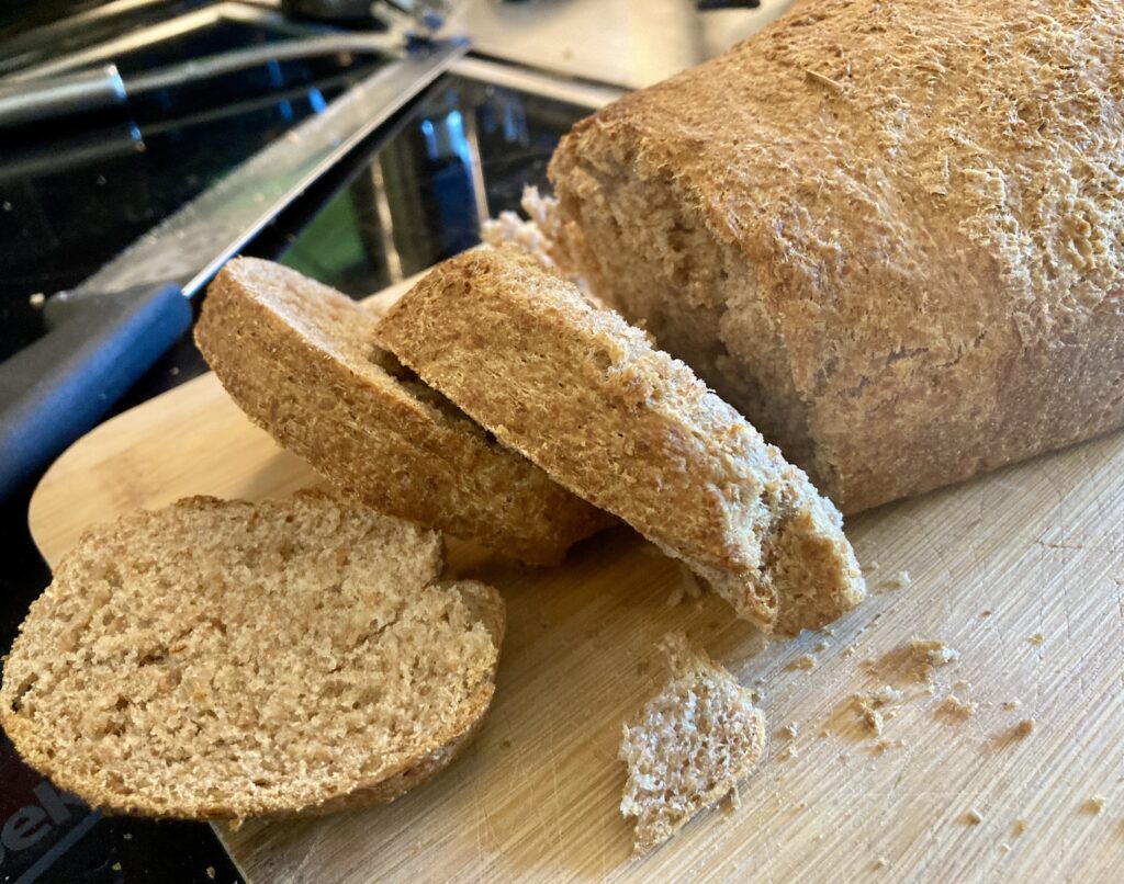 Weil ich ein echt gutes Brotmesser habe, kann man es auch heiß aus dem Ofen schneiden
