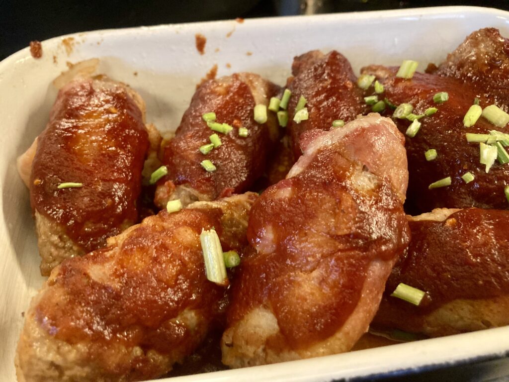 Bevor es in den Ofen geht, werden die Rollen mit der BBQ Soße mariniert