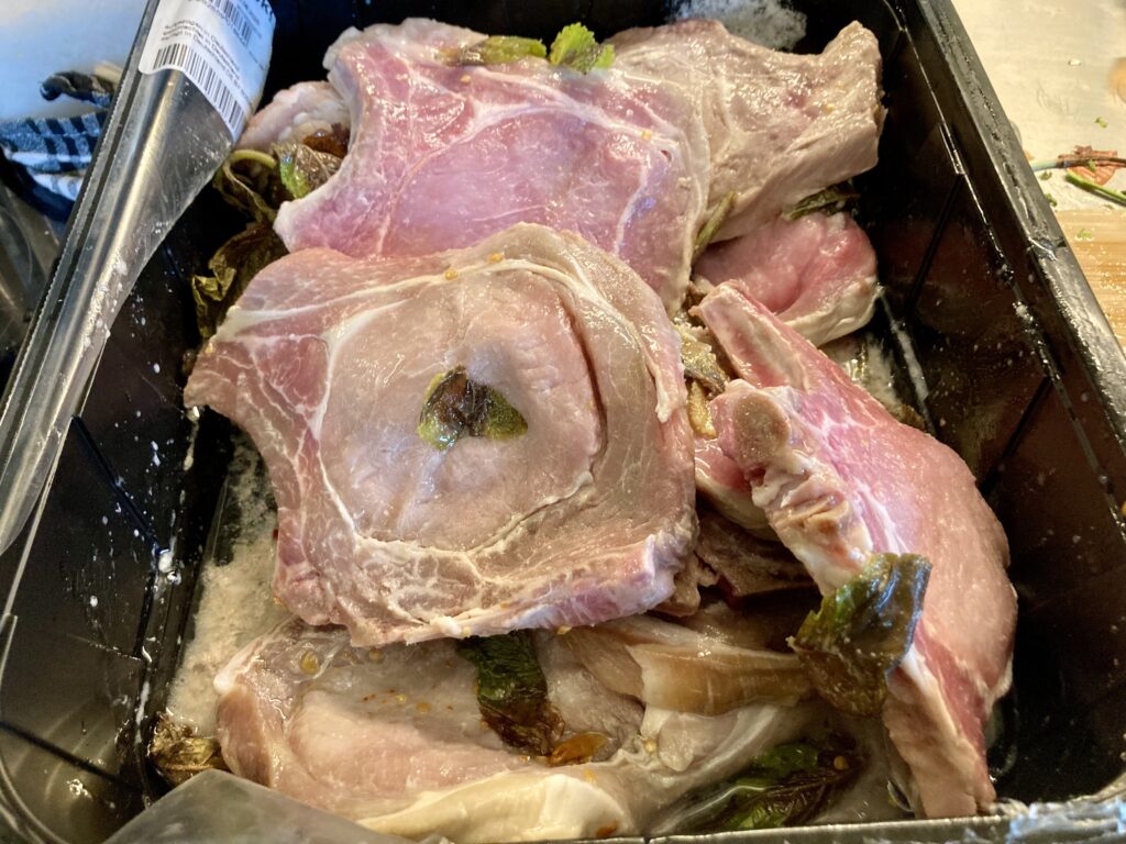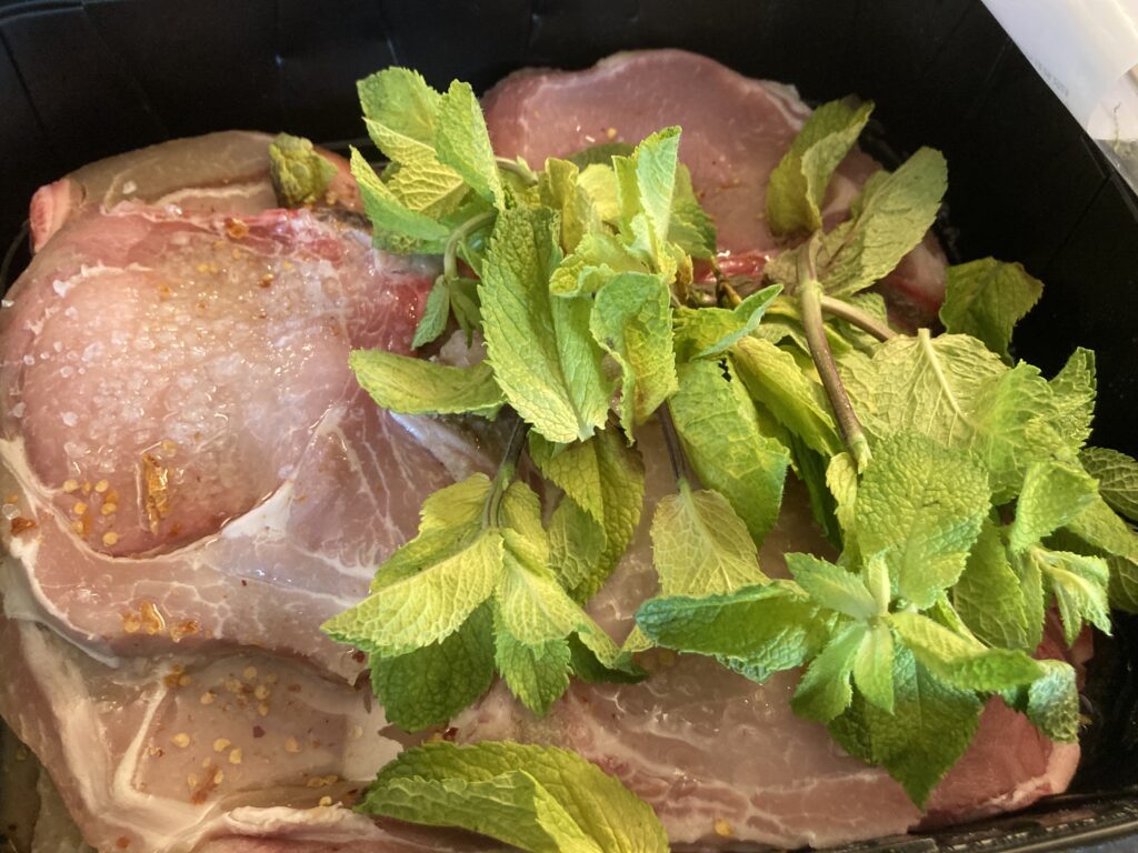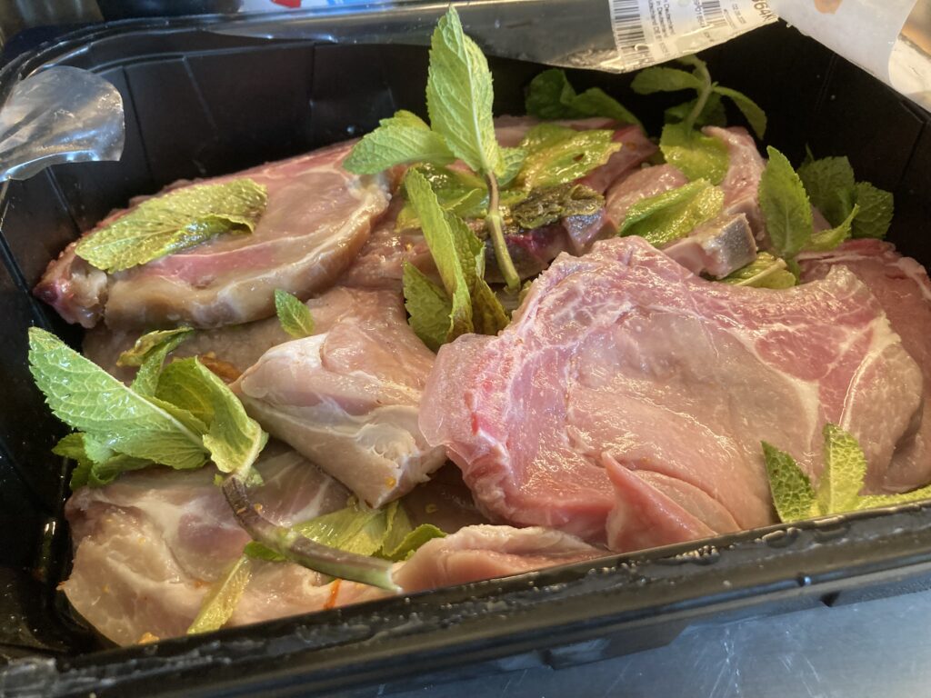 Kotelett in Öl, Zitrone und Minze eingelegt