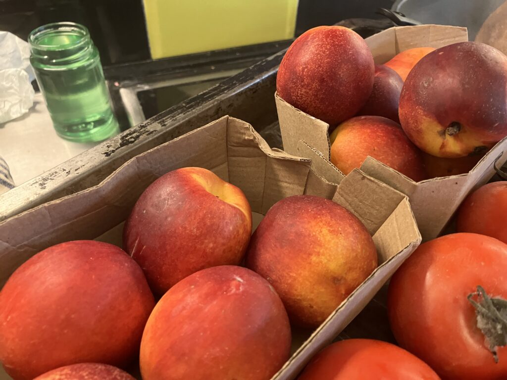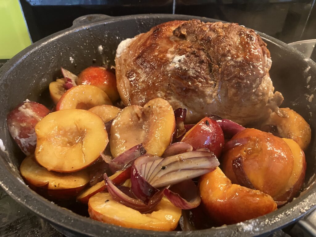 Ich heiße Euch zu einem meiner leckersten Gerichte der letzten Wochen und Monate Willkommen. Hier gibt es Sommerküche auf Gedeih und Verderb, bis der Herbst kommt. Beim Handelshof gab es ein schönes Stück Rücken vom Duke of Berkshire Schwein, statt 23 Euro für € 2,99 pro Kilo im MHD Verkauf. Die Nektarinen kaufen ich immer als ganze Steige beim Bananen Fred auf dem Wochenmarkt für 5 bis 8 Euro für 5 Kilo. Wenn man das verwendet, was gerade geerntet wird, dann ist es auch saisonal. Nun muss man nur noch darauf achten, es nicht so krachledern zuzubereiten. Das erledige ich ganz konventionell in der Pfanne.