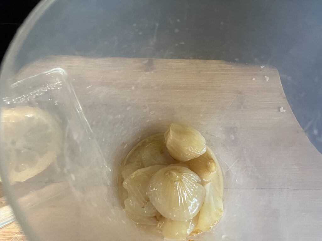 Zwiebeln inkl Knoblauchzehen in den Mixbecher geben