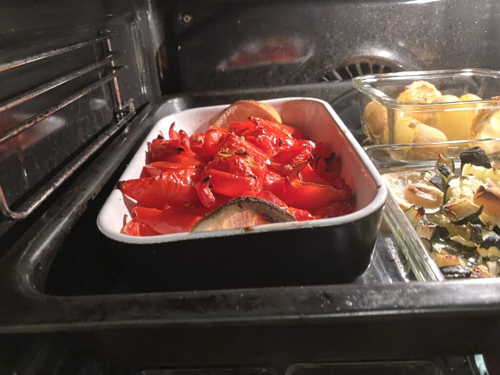 Nach einer dreiviertel Stunde wird das Gemüse aus dem Ofen geholt und es darf über Nacht abkühlen. Bei mir ist schon zwei Uhr nachts