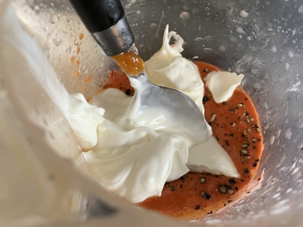Griechischen Joghurt mit der Paprika sanft untermischen