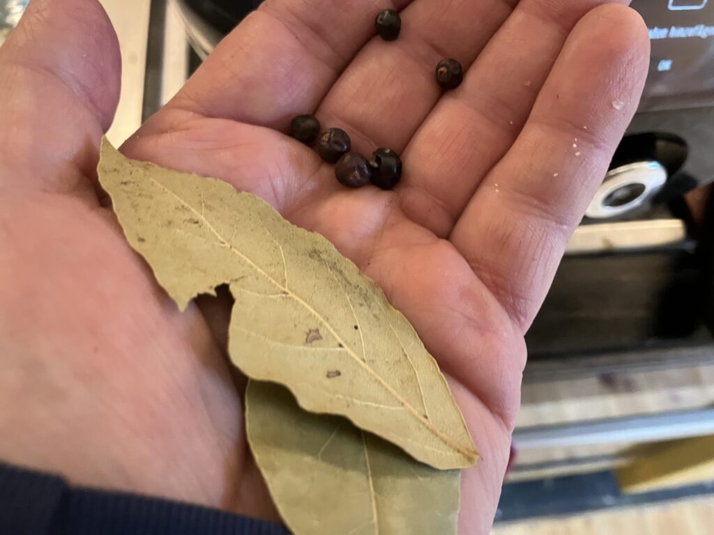 Lorbeerblätter und Wacholderbeeren