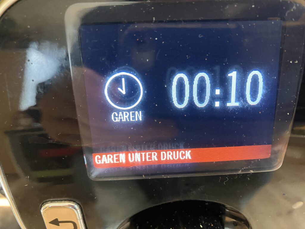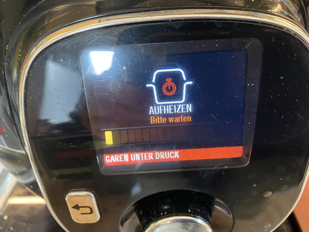 Hier kocht er schon und die Zeit im Display läuft rückwärts