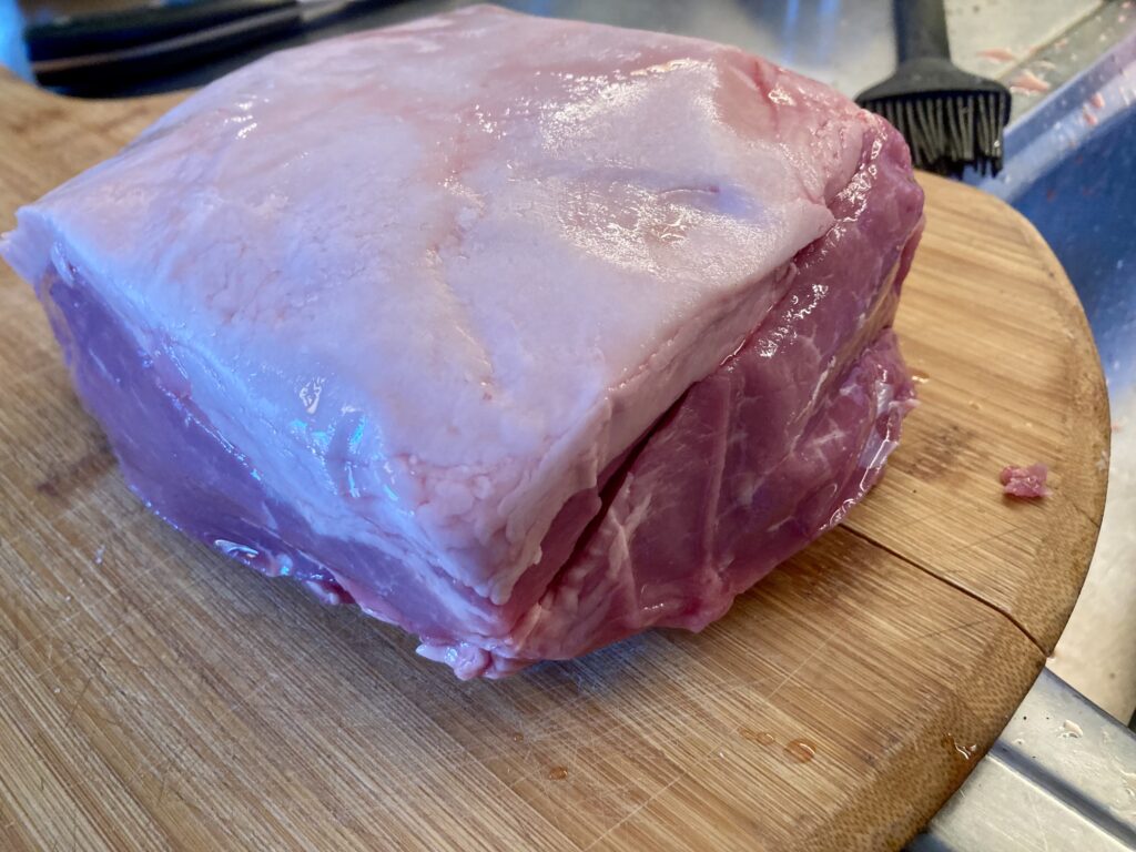Das ist einer der besten Zuschnitte vom Schwein. Die Hüfte ist ein Stück aus dem man Steaks, Schnitzel, oder auch Braten machen kann. Das Fleisch ist butterzart, wenn man dem gibt es es braucht und das Duke of Berkshire Schwein wird besser gehalten als normale Schweine, hat mehr Fettgehalt und ein Kilo davon kostet mit 23 Euro so viel, als wenn man sich ein Stück Rind kaufen würde. Das kollidiert natürlich mit dem Wertesystem das viele Leute haben, bei denen im Ranking (so wie bei mir) Rind, vor Schwein, vor Geflügel kommt und deswegen gibt es davon immer viele Reste im MHD Verkauf. Ich habe 4 Euro pro Kilo bezahlt, dann ist es echtes Geschenk für den Speiseplan und selbst in der Woche bezahlbar und ein Lichtblick im tristen Alltag. Bei diesem Rezept geht es darum unter einer Stunde Zubereitungszeit zu bleiben und dafür maximalen Genuß zu bekommen.