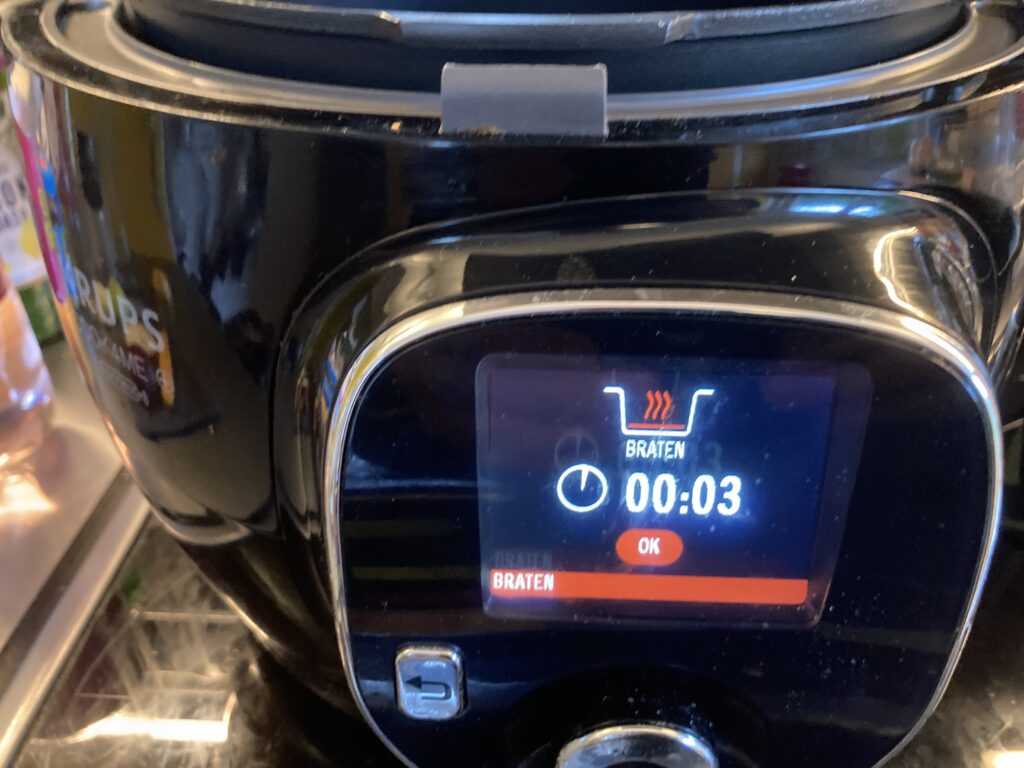 Wir nehmen den Krups cook 4 me, aber Ihr könntet einen Schnellkochtopf, oder einen normalen Topf, Bräter, oder eine Pfanne benutzen, dann dauert es halt länger. Dafür benutzt mal halt so eine Höllenmaschine um immer besser essen zu können, als das eigentliche Zeitlimit in dem Moment erlauben würde.
