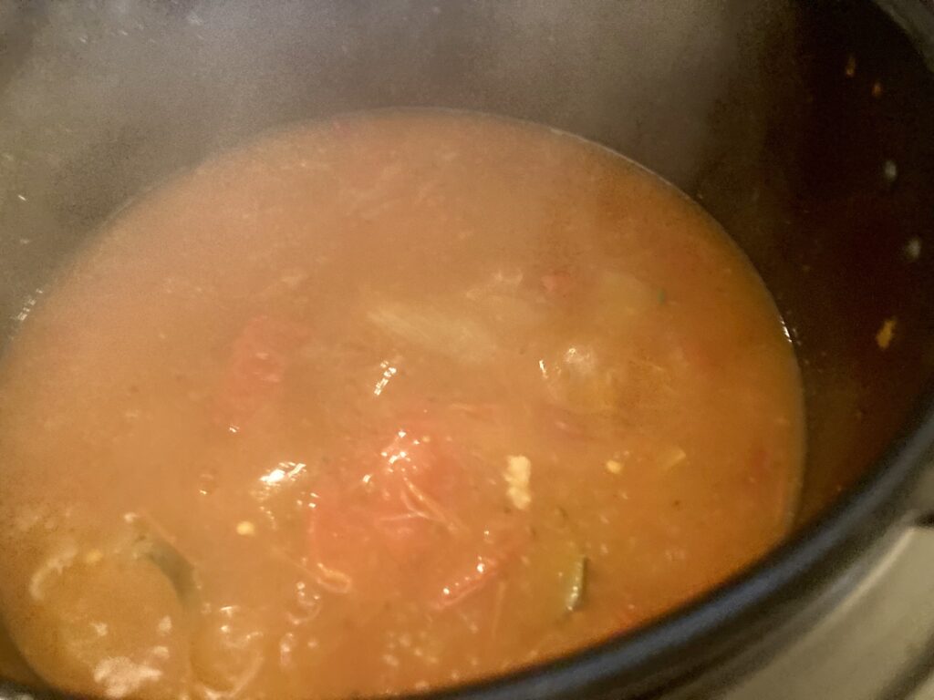 Ich stelle den Topf jetzt wieder auf konventionelles Braten ein, um die Soße einzukochen und zu binden