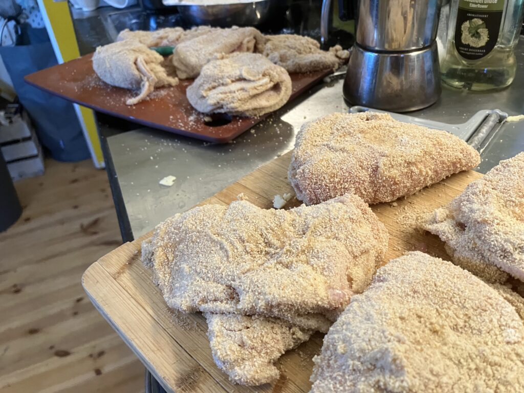 Schnitzel warten einen kleinen Moment bevor es weitergeht.