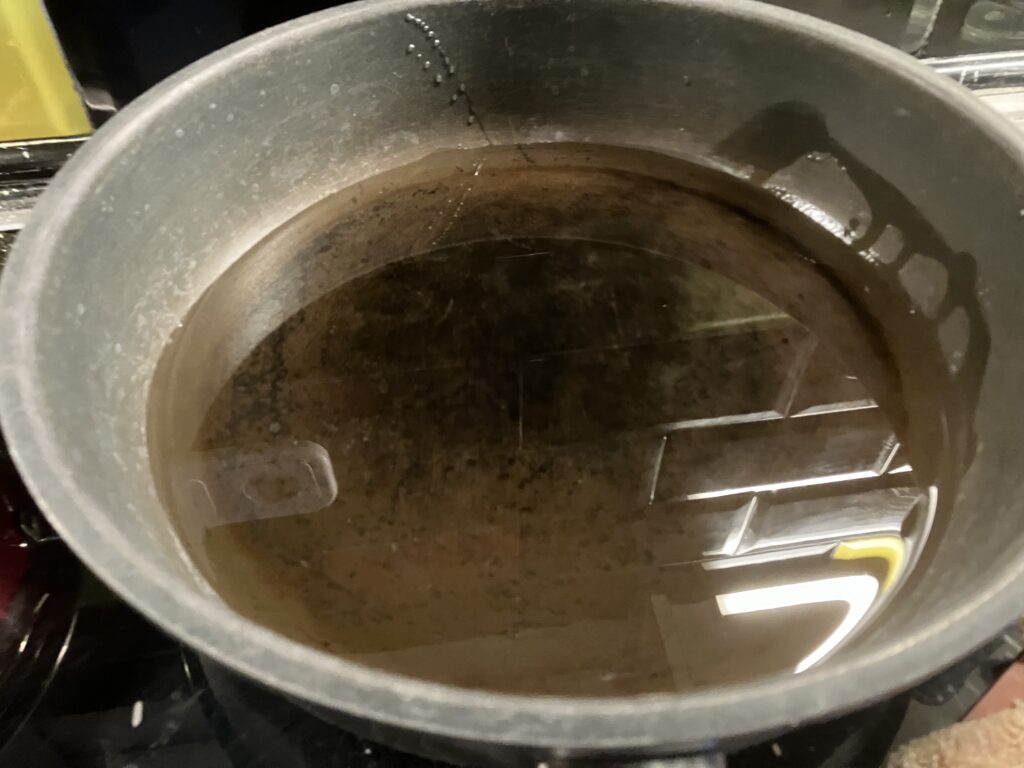 Pfanne leicht rütteln, damit das Öl auch oben landet. Das nennt sich soufflieren