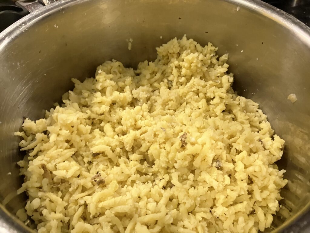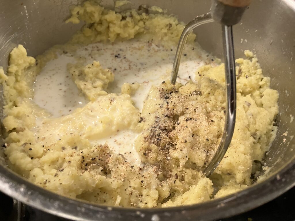 Wenn Ihr weichere Konsistenz wünscht, noch Butter und / oder Milch nachgeben, aber jetzt schon vorsichtig sein, damit es nicht zuviel wird.