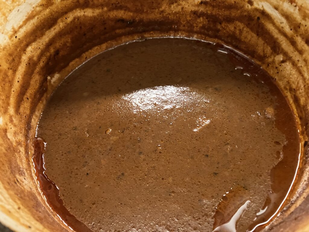 Ich nehme meine vegane braune Soße als Basis zum Schmoren. Da ist schon alles an Geschmack drin was man braucht.