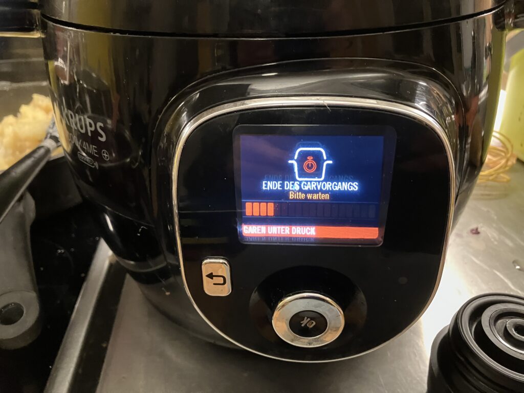 Aber jetzt. Zehn Minuten Druckkochen für das Fleisch.