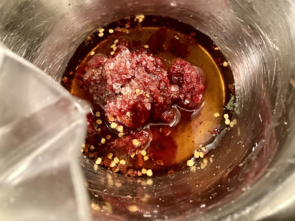 So ein asiatisch anmutendes Hähnchen braucht eine Marinade, die süßsauer und scharf ausgebaut ist. Die machen wir jetzt