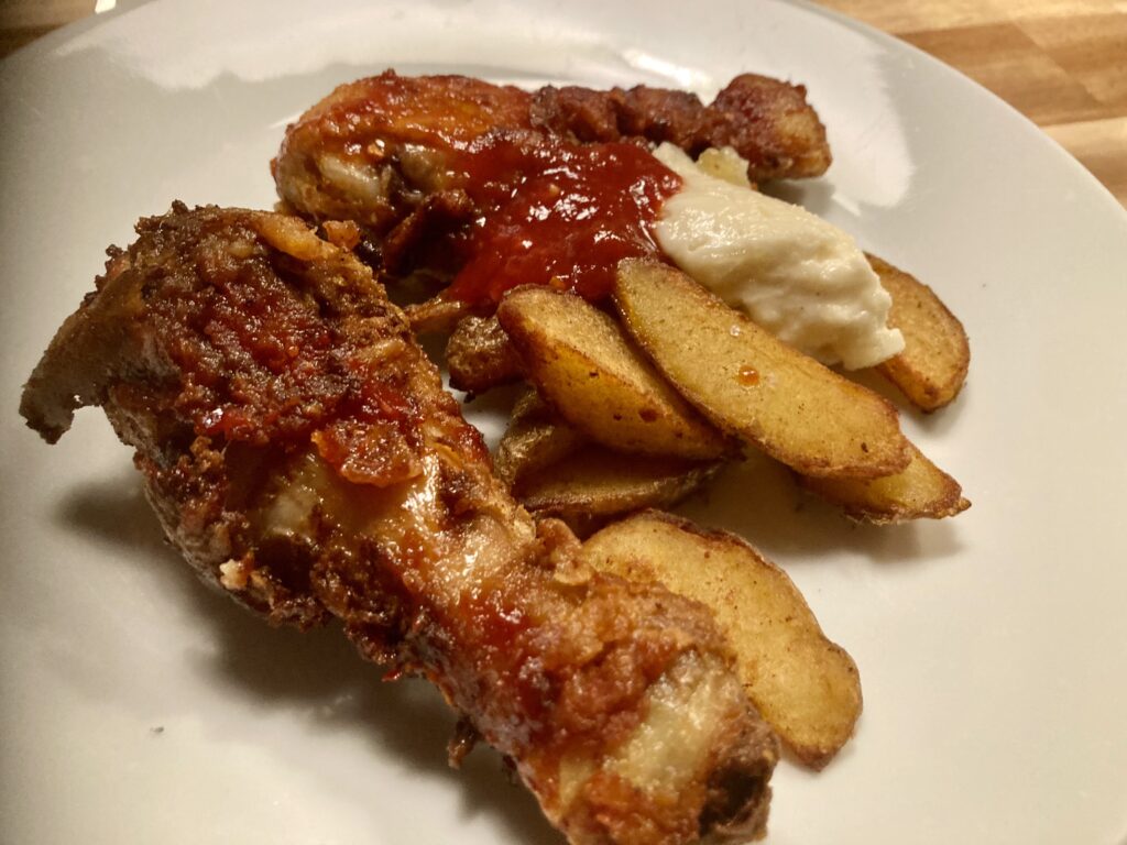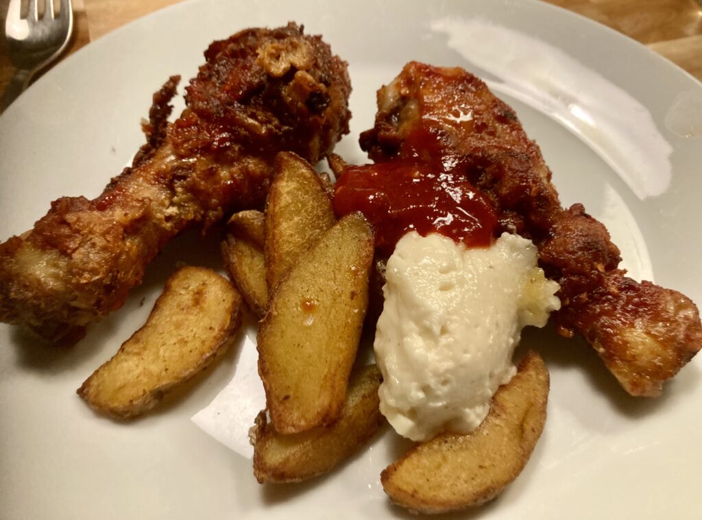 Es war ein gutes Essen, wenngleich keine Unterschenkel, vielmehr Nuggets – zart und würzig.