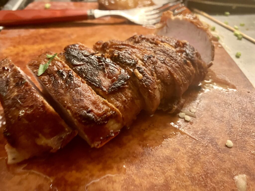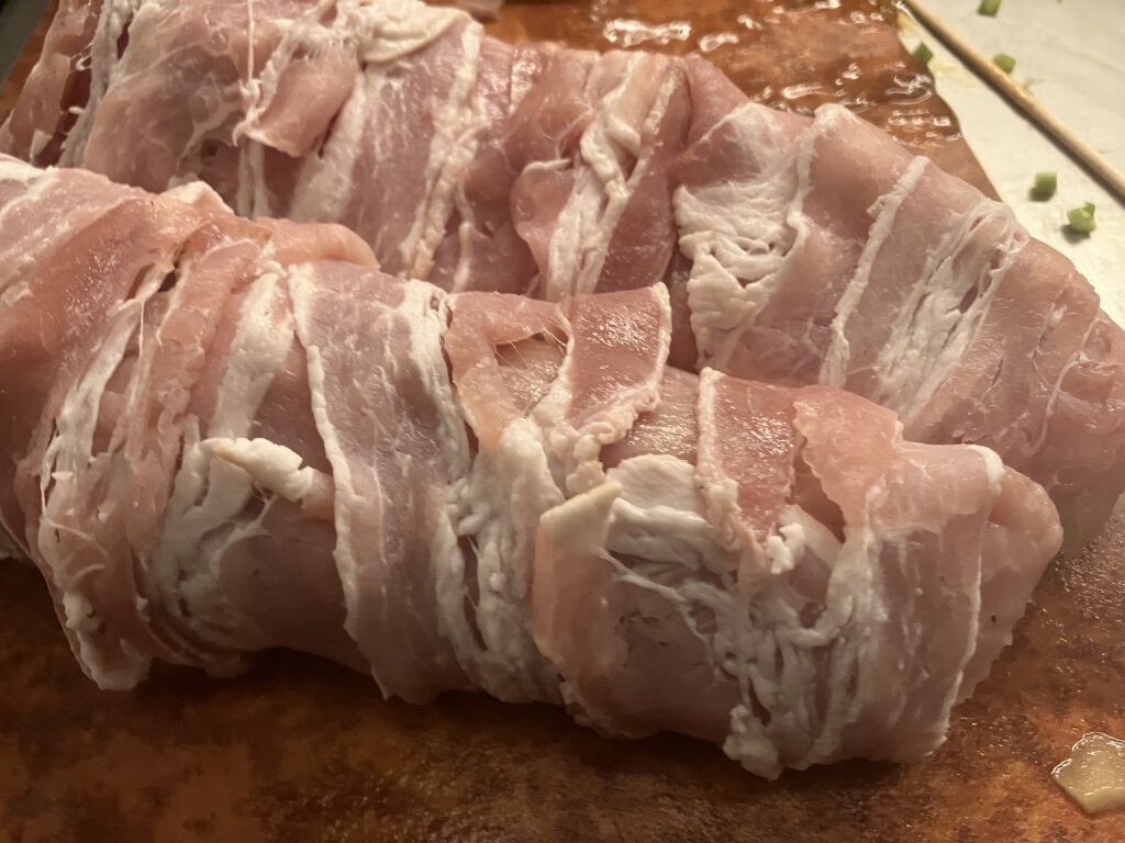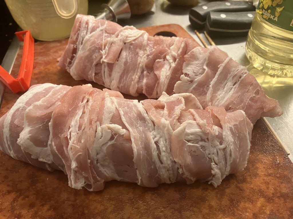 Schweinerücken in Bacon gewickelt