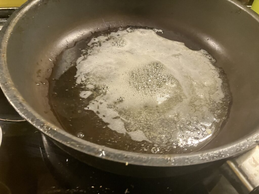 Rapsöl, oder Butterschmalz in der Pfanne erhitzen