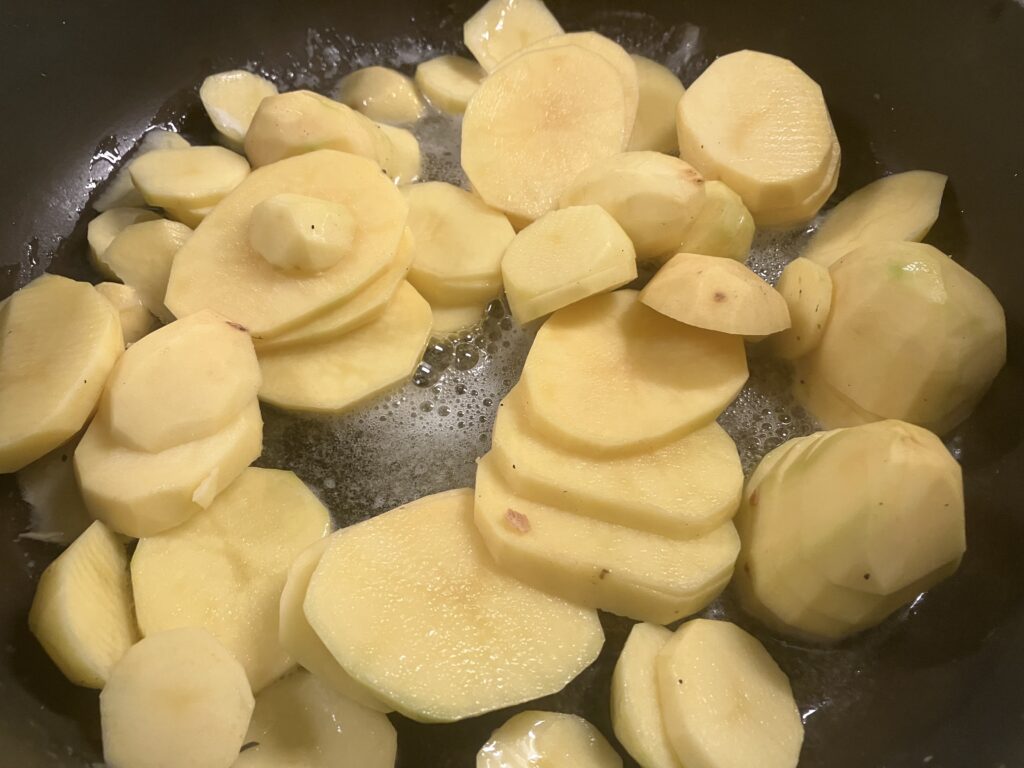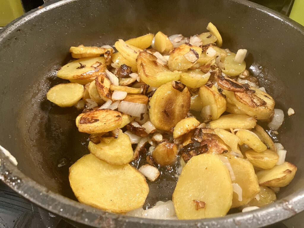 Kartoffeln bekommen Farbe, ich gehe auf 80 % runter