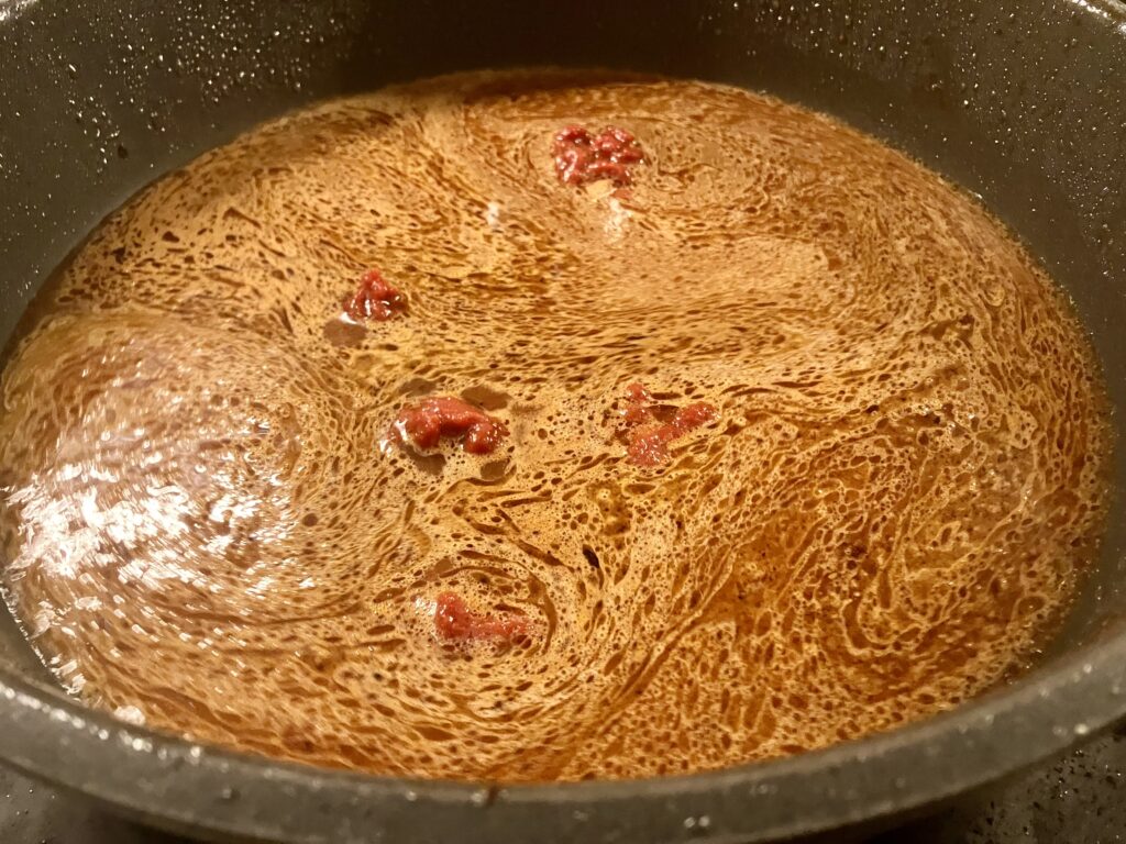 Soße ist brutal eingekocht. Jetzt mit Salz und Pfeffer abschmecken