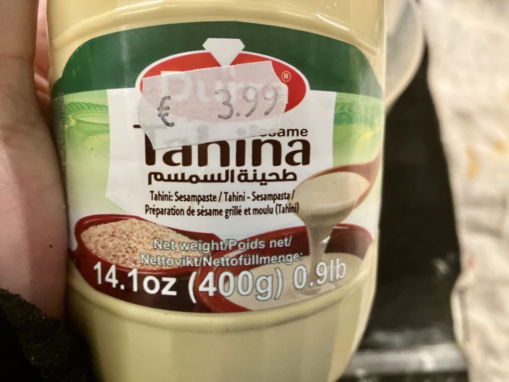 Tahin. Das ist eine Sesampaste, die sehr nussig schmeckt.