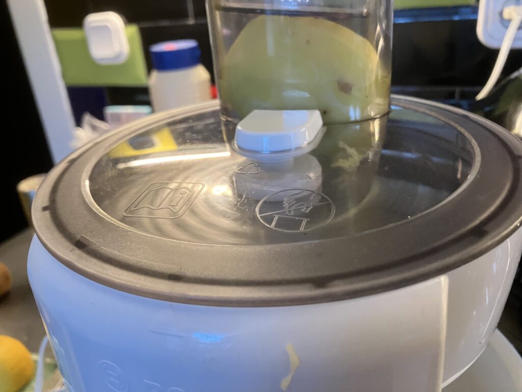 oben in den Schacht des Entsafters,