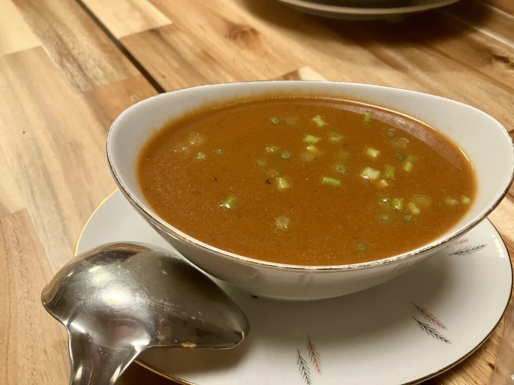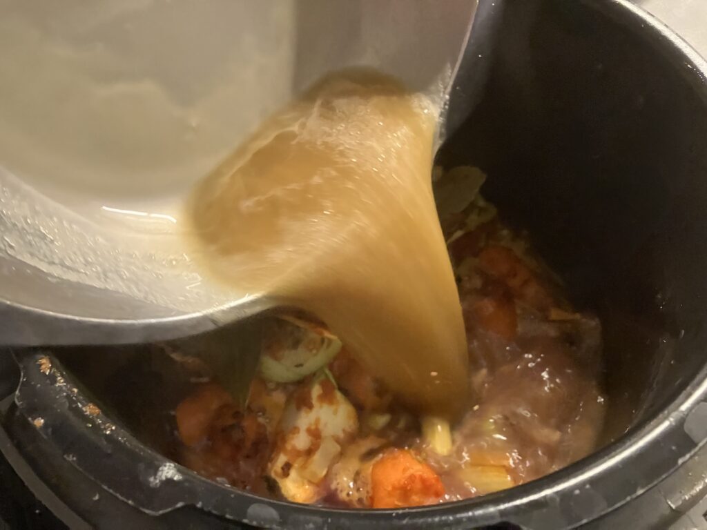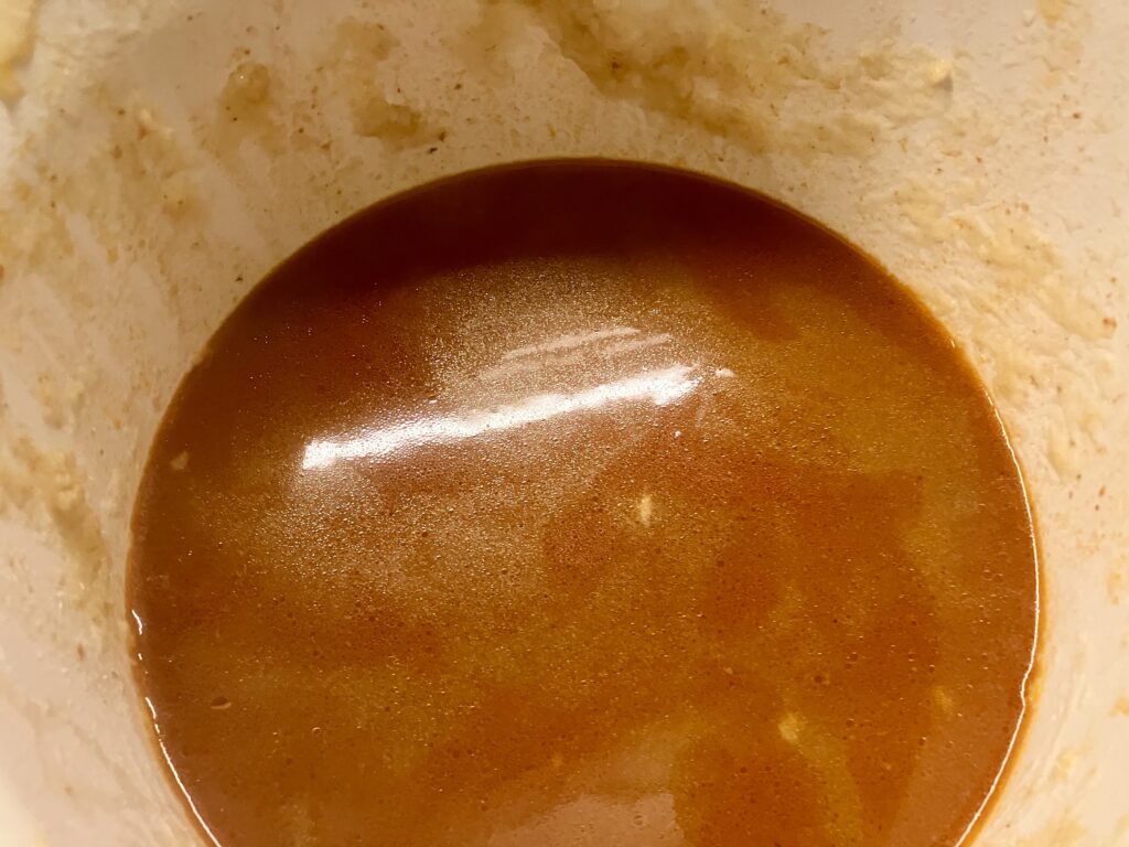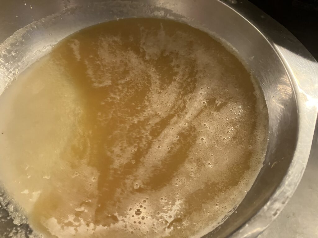 Ich habe eine braune Soße gekocht, die ich Euch auch noch zeigen werde. Dafür habe ich die ausgepresste Stärke zum Binden benutzt.