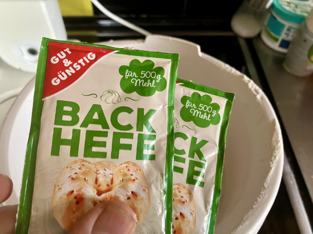 Weil das als Komponente am längsten dauert, fange ich mit dem Teig für die Burgerbrötchen (Buns an) Weil die rustikaler werden dürfen, verwende ich 1050 Weizenmehl