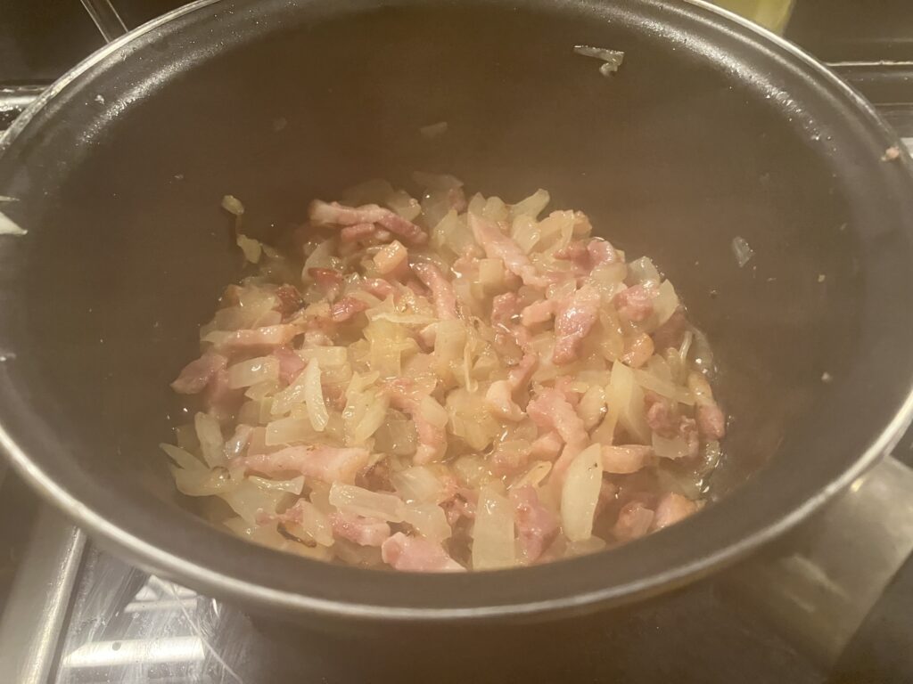 Speck und Zwiebeln sollen reduziert werden und Farbe bekommen