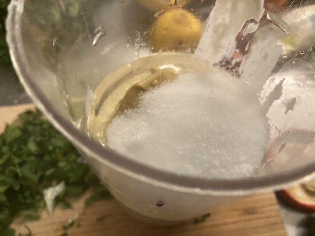 Die zweite Hälfte nehme ich für mein Salatdressing