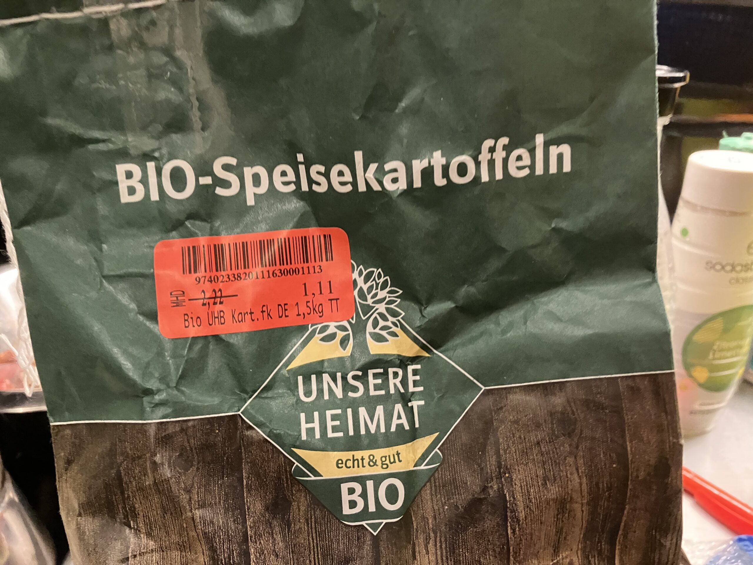 Kartoffeln sind echt so krasser Scheiß. Hätte ich niemals gedacht wieviele Sorten es gibt und was da für Unterschiede vorhanden sind. Das gilt für die unterschiedlichen Ausrichtungen, festkochend, vorwiegend festkochend und mehligkochend, aber auch innerhalb der Sortenvielfalt. Bei Edeka habe ich diese Simonetta Kartoffeln im Angebot gefunden. Richtig fest, richtig gelbes Fleisch, total dreckig, was ich irgendwie auch als Qualitätskriterium empfinde und als wenn das nicht reichen würde, sind die auch noch bio. Daraus habe ich als erstes einen ziemlich geilen Kartoffelsalat gemacht, der den Winterblues vertreiben hilft, denn der schmeckt nach Sonne. 1,5 Kilo für einen Euro und elf Cent.