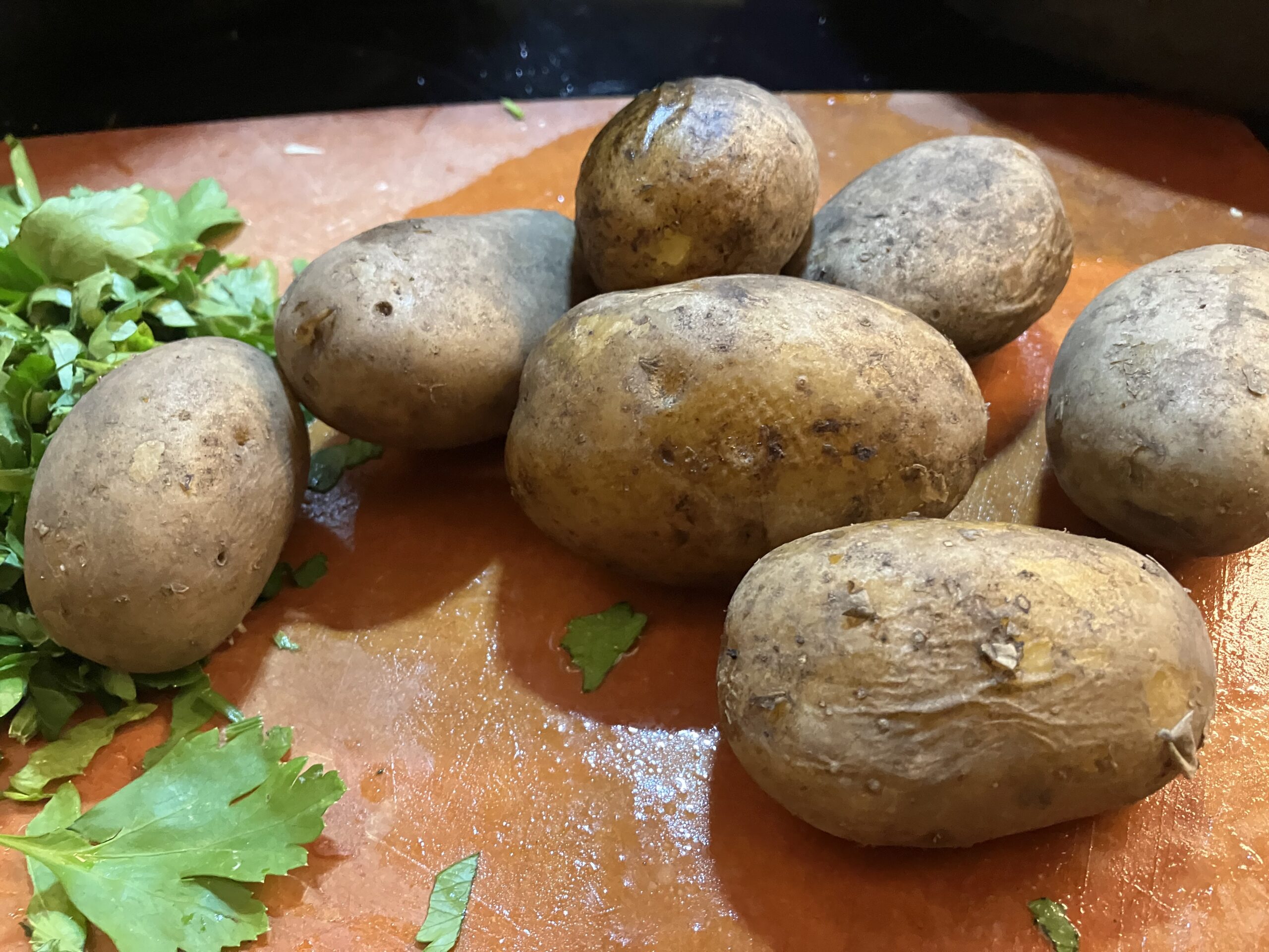 Kartoffeln ausdampfen lassen, Ich habe die komplett gekocht, verwende jetzt aber nur einen Teil davon. Nach 12 Stunden bilden die Kartoffeln resistente Stärke, dann treiben sie den Blutzucker nicht mehr hoch. Dann sind sie für mich optimal. Entweder lässt man sie jetzt alle 12 Stunden oder einen Tag liegen, wenn man darauf achten muss, oder verwendet sie spontan. Ich lagere die Kartoffeln im Kühlschrank.