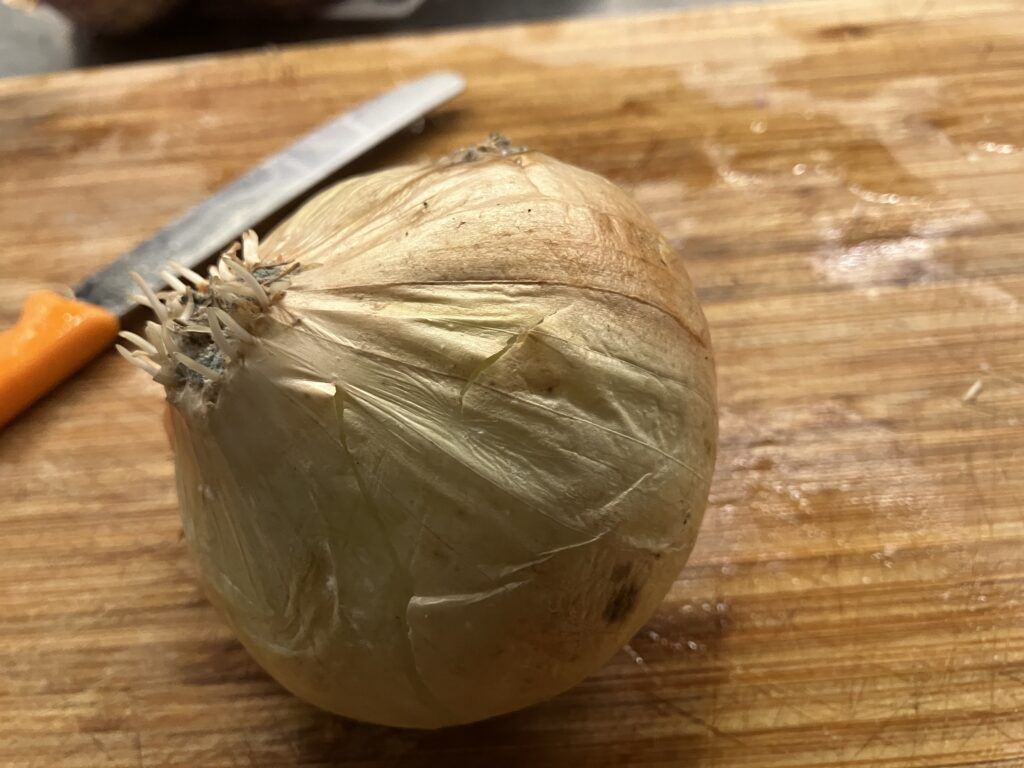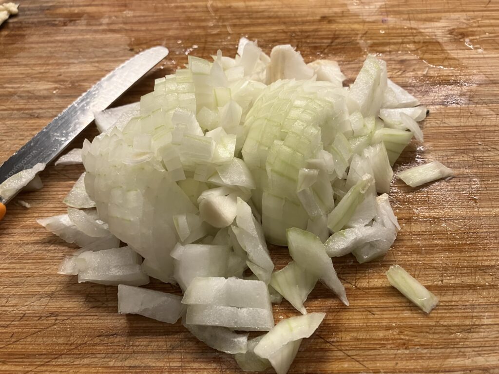 Zwiebel häuten und zerkleinern