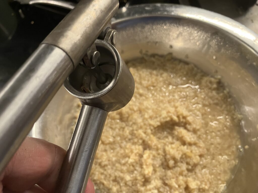 Knoblauch zum Bulgur pressen