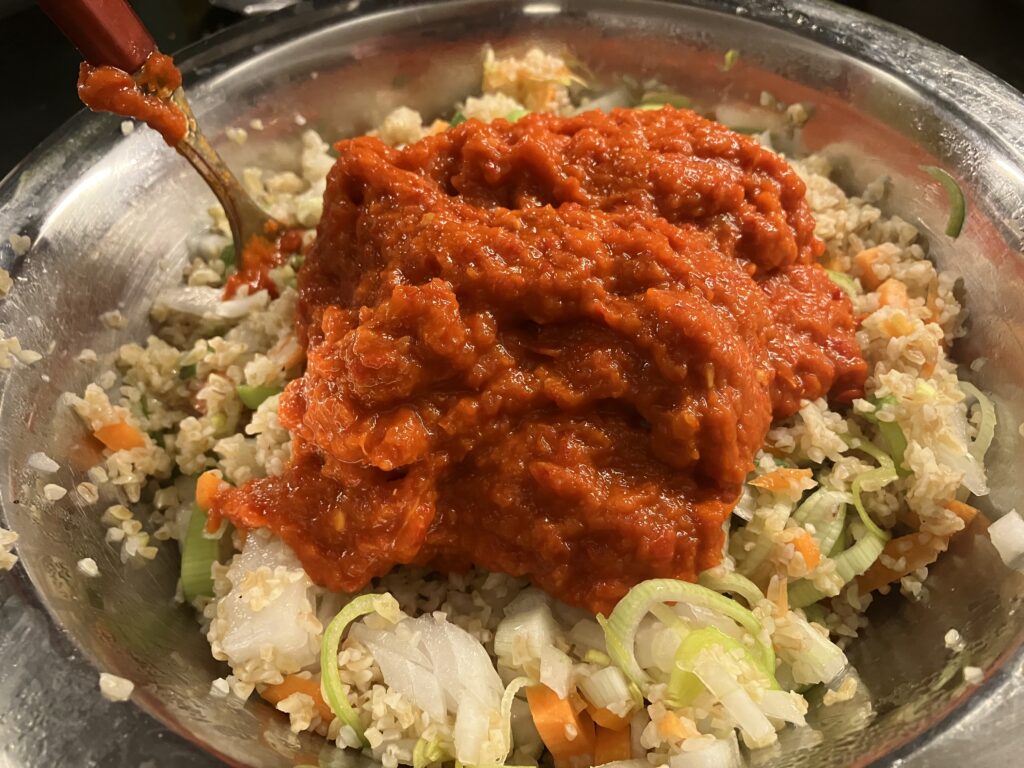 Das ist Ajvar. Mache ich normal selbst, aber hier gekauft. Kann man mild, oder scharf bekommen. Ich verwende am liebsten scharfes Ajvar.