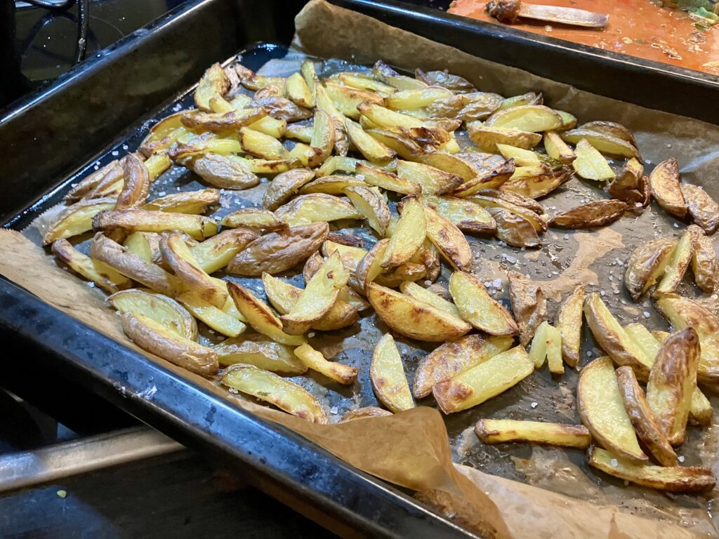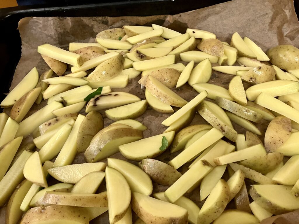Es hat sich bei mir bewährt, die Pommes bei der Zubereitung im Ofen auf Backpapier zu legen. Dann kleben sie nicht am Backblech fest