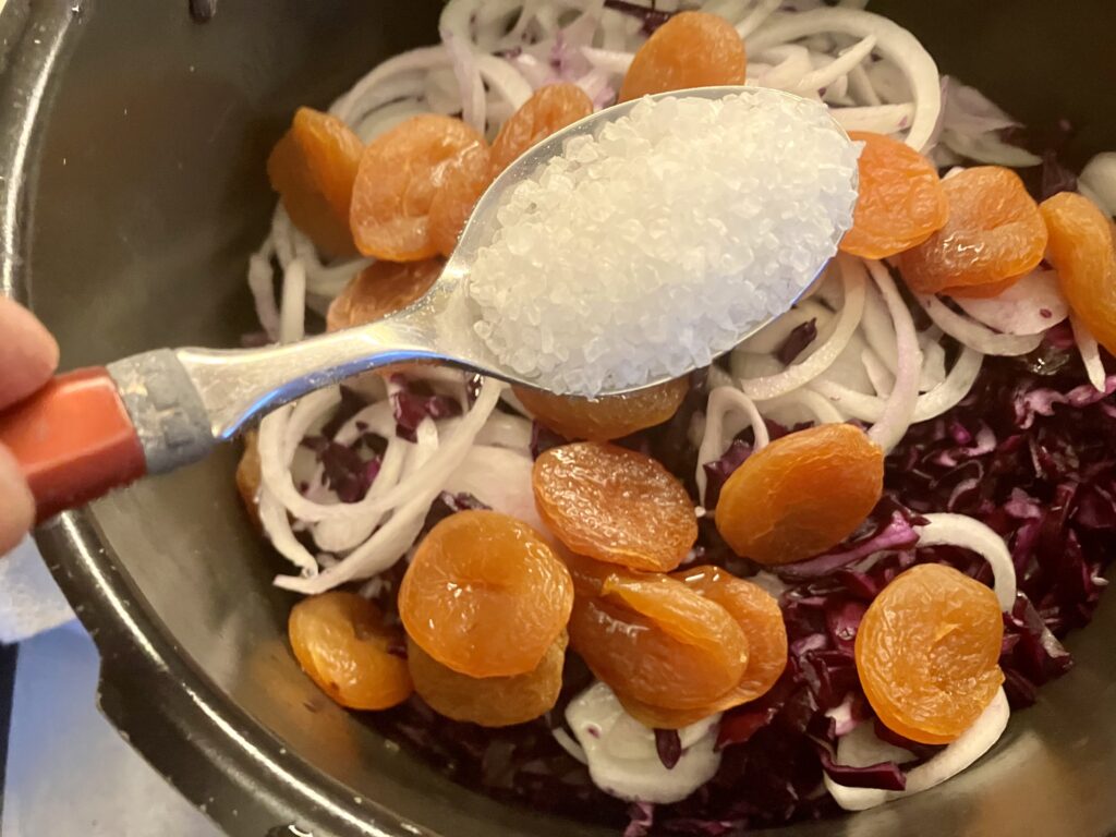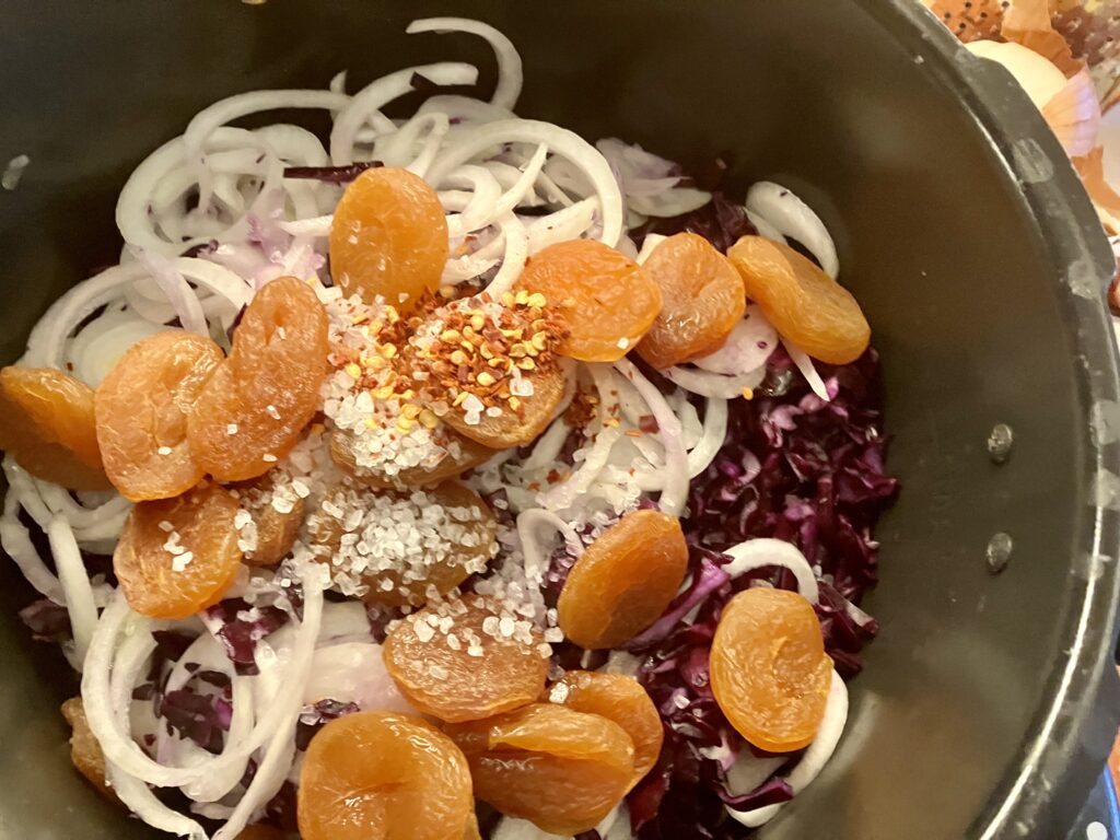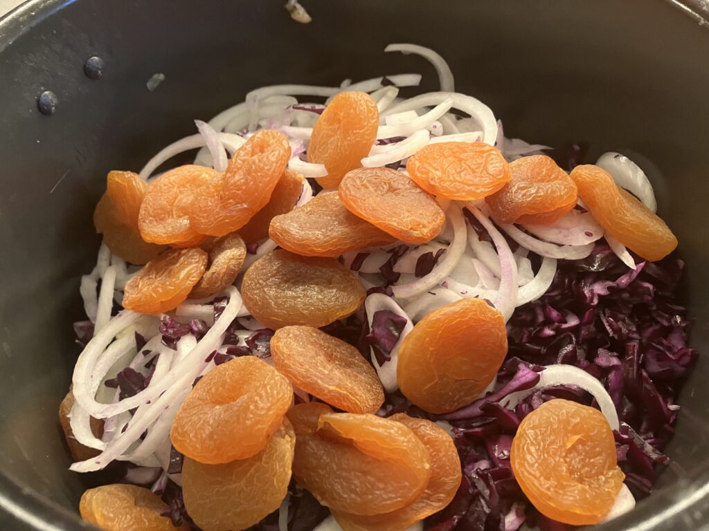 Rotkohl mit Apfel und getrockneten Aprikosen