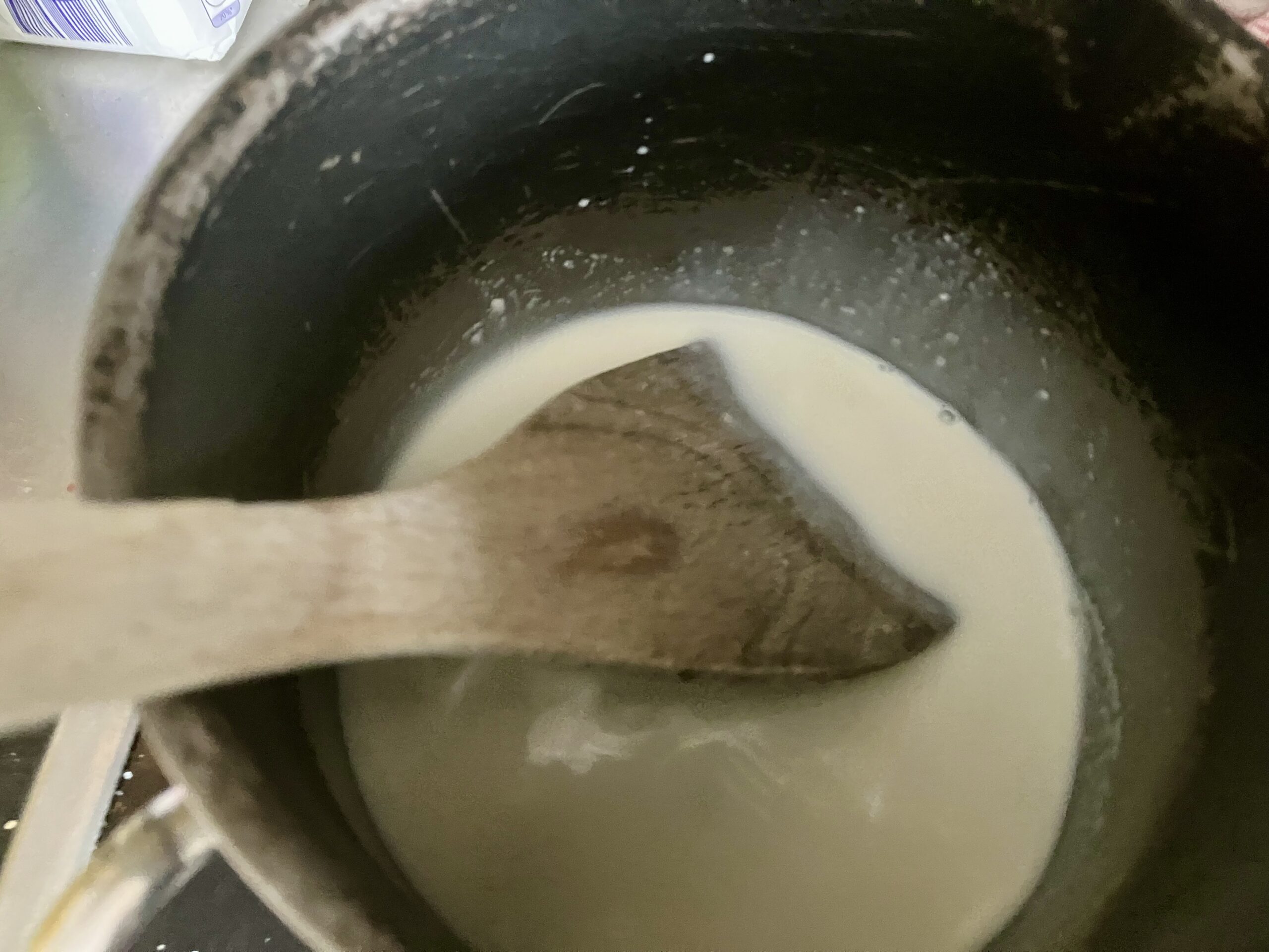Ich lasse die Milchmischung noch 5 Minuten mit dem Mehl reagieren